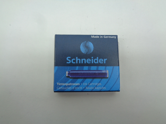 Caixa c/6 cartuchos de tinta Schneider para caneta tinteiro, medida universal, cabe na maioria dos modelos de caneta tinteiro, cor azul permanente, made in Germany.