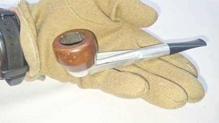 Cachimbo Denicotea em alumínio reto fornilho em briar marrom rosqueavel piteira em resina plástica.